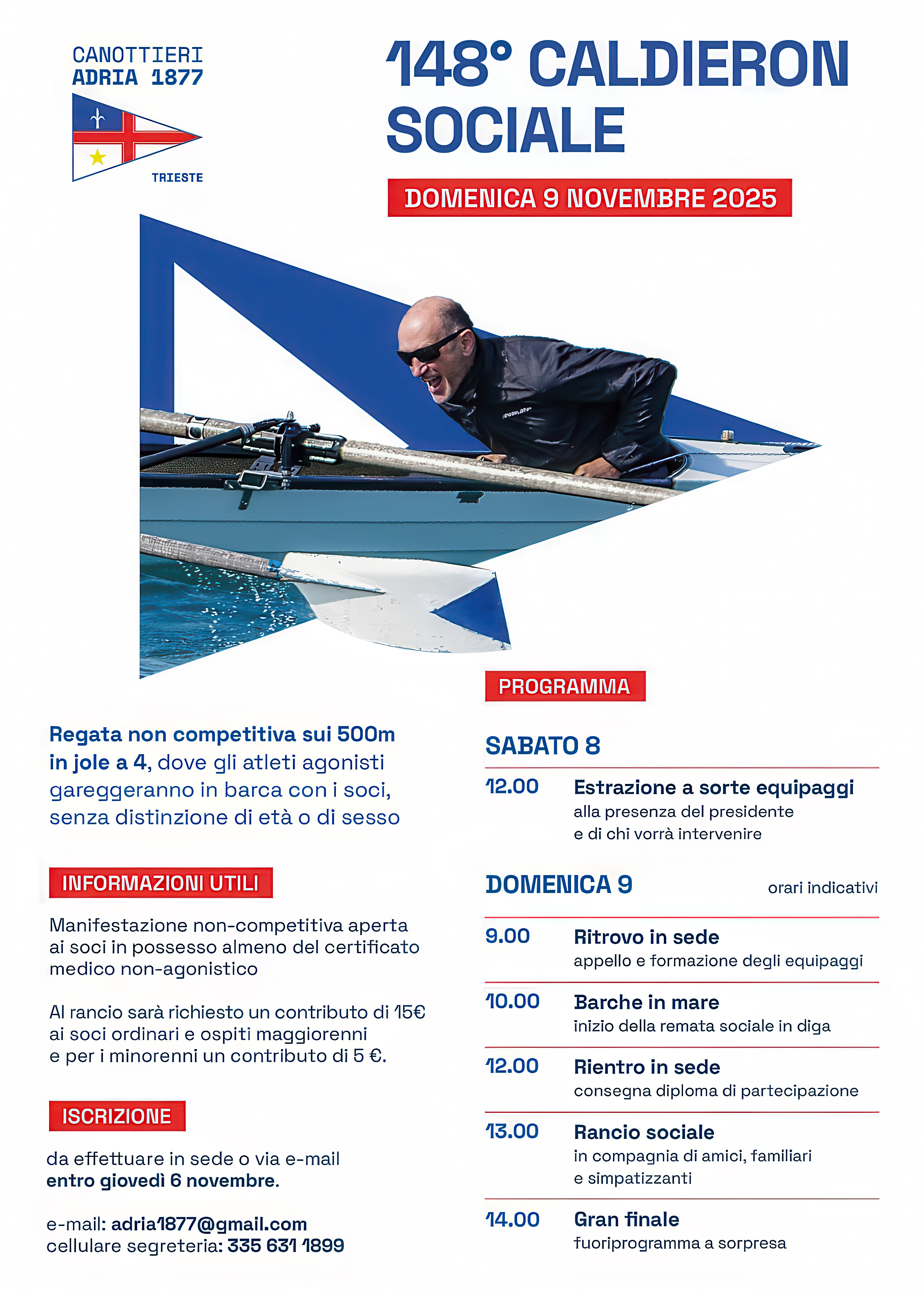 specificando se si intende partecipare come vogatore o timoniere e, in ogni caso, l'anno di nascita.